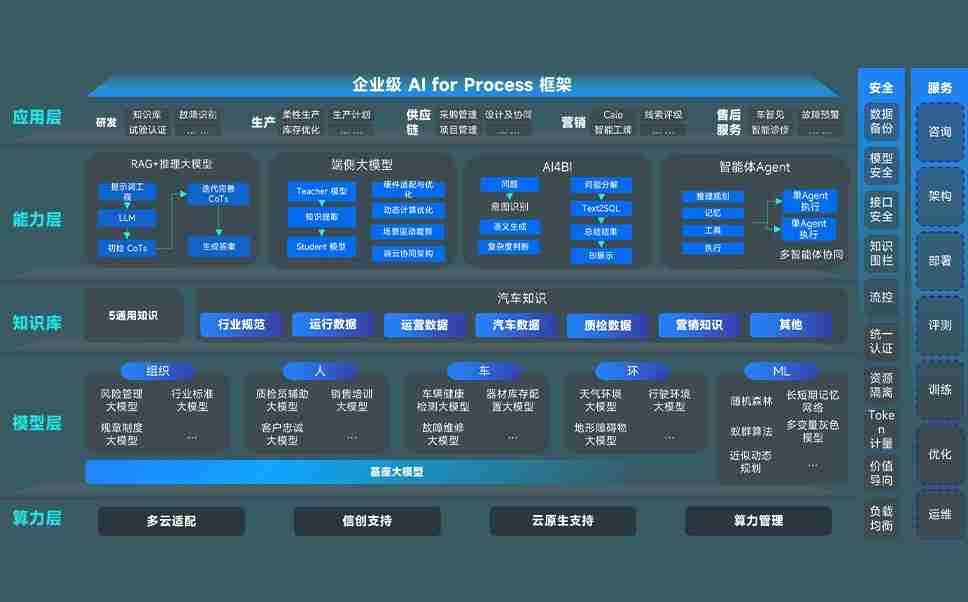 巅峰国际问学智车解决方案是一套基于AI技术的汽车行业智能化系统,,覆盖从底层算力到顶层AI应用的全栈方案。。方案由算力层、、、模型层和应用层组成:算力层,,,,方案支持多种一体机配置,,,具备云端灵活部署、、、、多云适配以及动态优化计算资源的能力;模型层,,,巅峰国际问学平台版提供了企业级AI应用一站式构建与管理平台,,,支持基于后训练强化技术的汽车企业专属模型的训练、、、、评测和运营;应用层,,,巅峰国际问学DeepSeek版提供包括超级员工、、、、智能招采、、、智能营销、、、、智能客服、、AI for BI等一系列解决方案,,,可助力汽车行业实现数字化转型,,,,让管理更智能、、、响应更敏捷。。。。